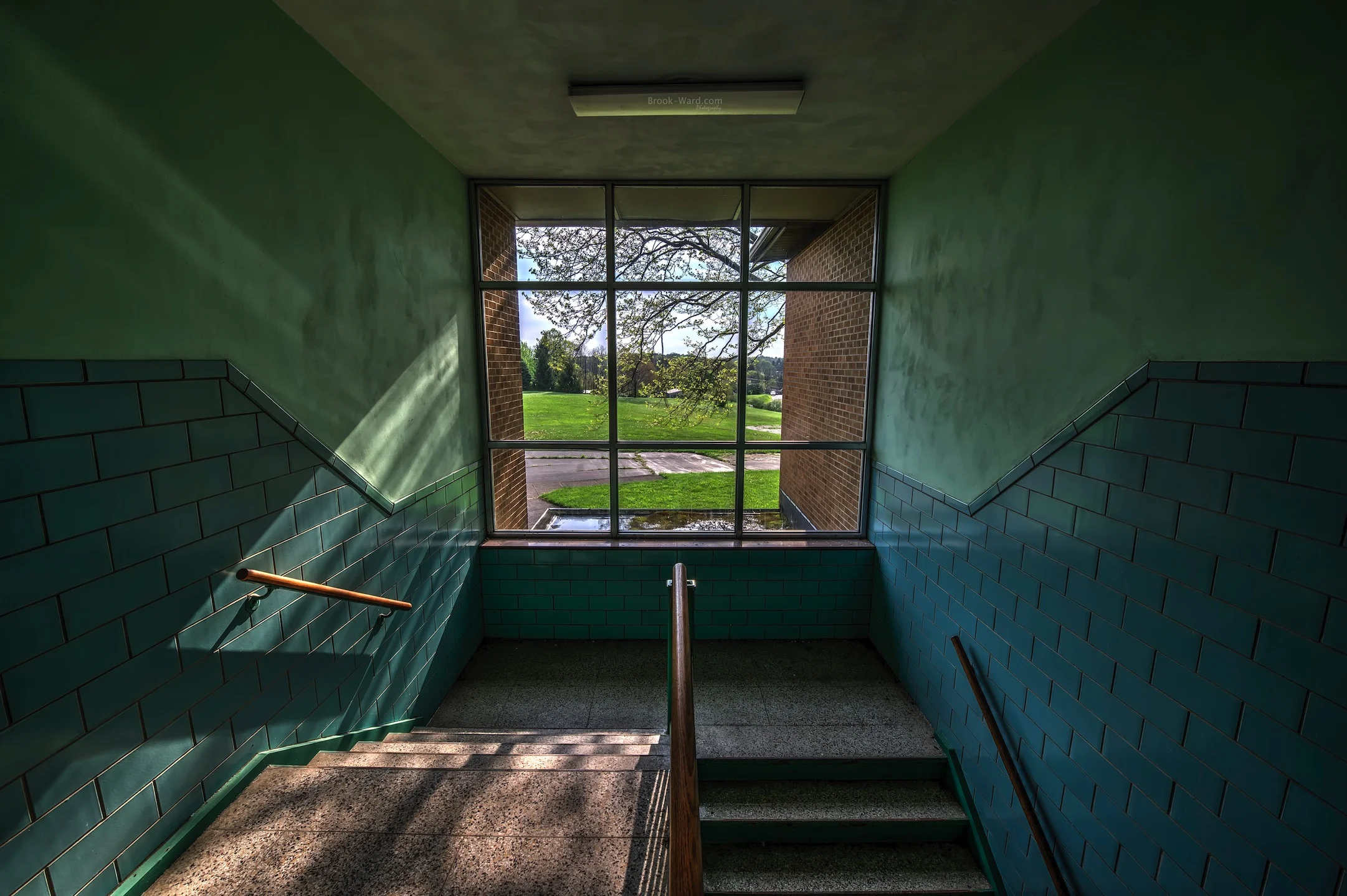 When we explored this abandoned school, I walked up and down these stairs numerous times. It wasn’t until we were about to leave that I actually looked at them. The sun shining in through the windows, the colors of the walls, etc… It was just pretty. Do you agree?
