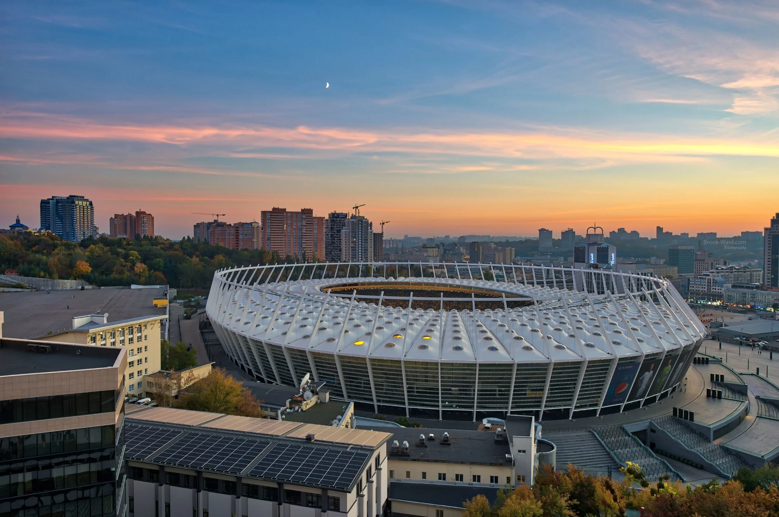 I’ve been absent from the digital world for the last 10 days, while Blair and I traveled to the Ukraine. We spent some time in Kiev (beginning and end of the trip), Chernobyl, and a few small villages. We spent most of our time within the Chernobyl Exclusion Zone, so you can imagine the number of future posts I’ll have from Chernobyl. I took this photo from our hotel window at the beginning of the trip in Kiev. This is their Olympic Stadium, used primarily as a football (soccer) venue.
