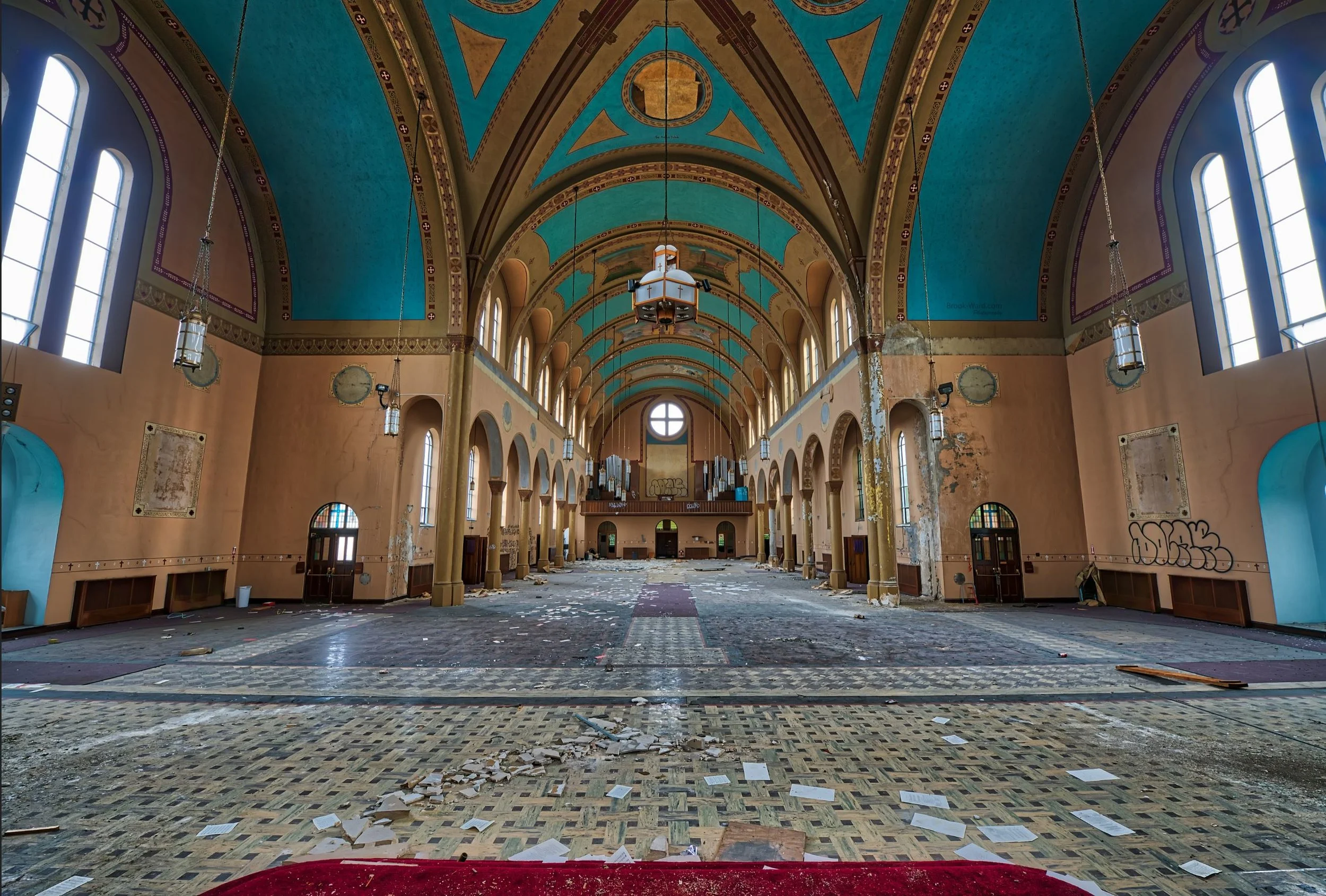 Here’s a photo from last spring. This is a great abandoned cathedral in the Pittsburgh area. I love the blue ceiling.