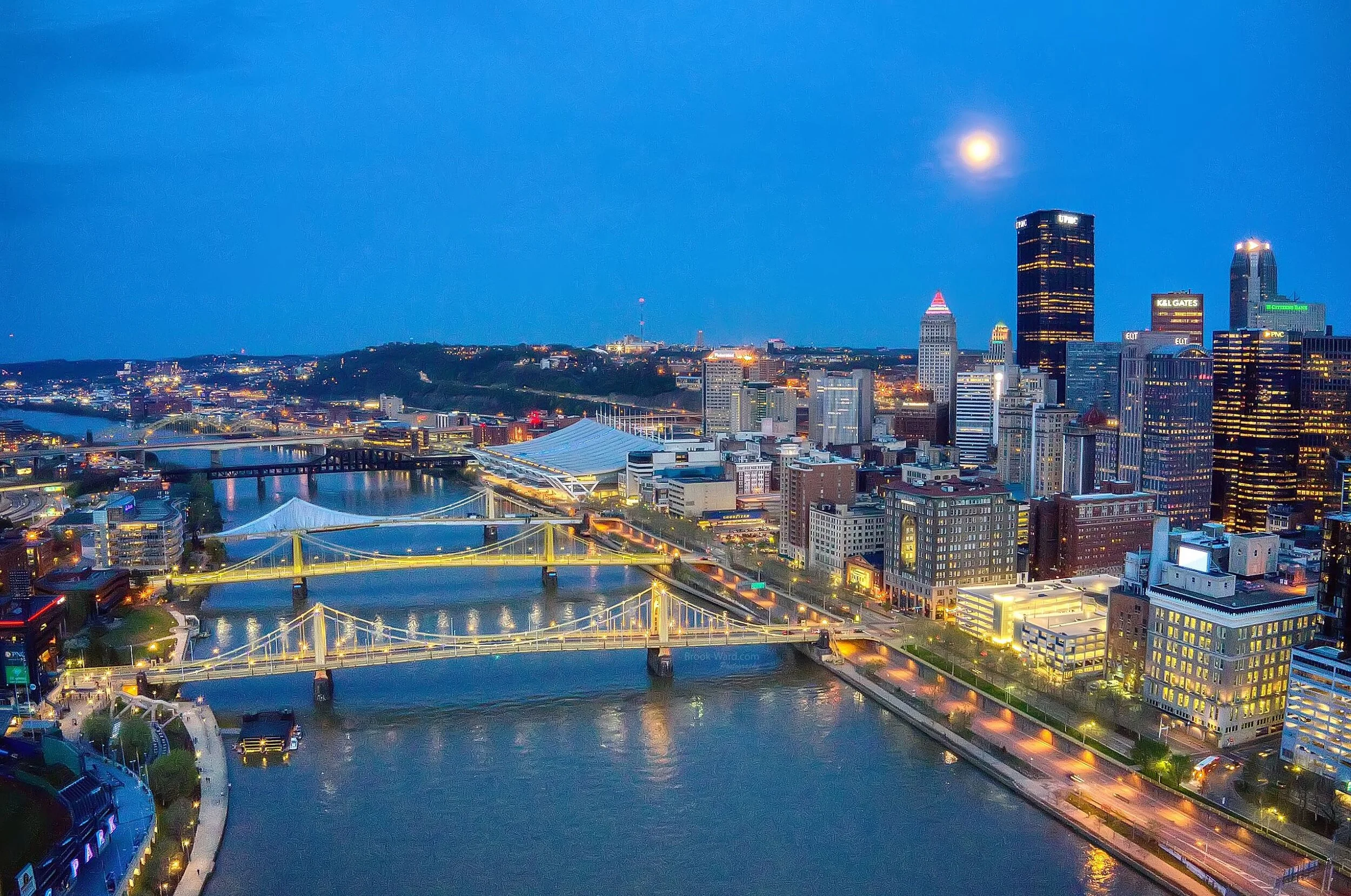 Here is a photo I took in late 2019 of downtown Pittsburgh. You can see the baseball stadium (PNC Park), Allegheny River, the three sister bridges (one being renovated), the Lawrence Convention Center and most of downtown.