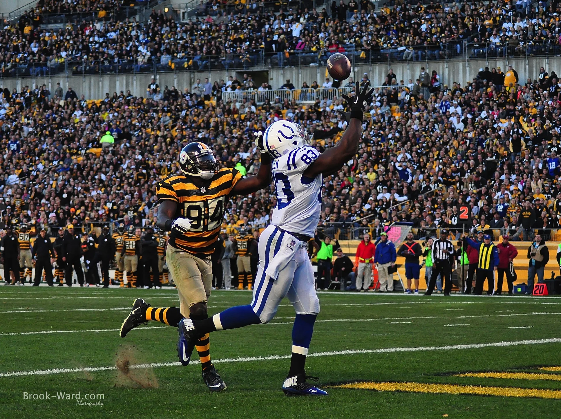 Well, maybe calling it “The Catch” is taking it a bit far. This is another photo from last Sunday’s game (Pittsburgh Steelers vs. Indianapolis Colts). I love everything about this photo.