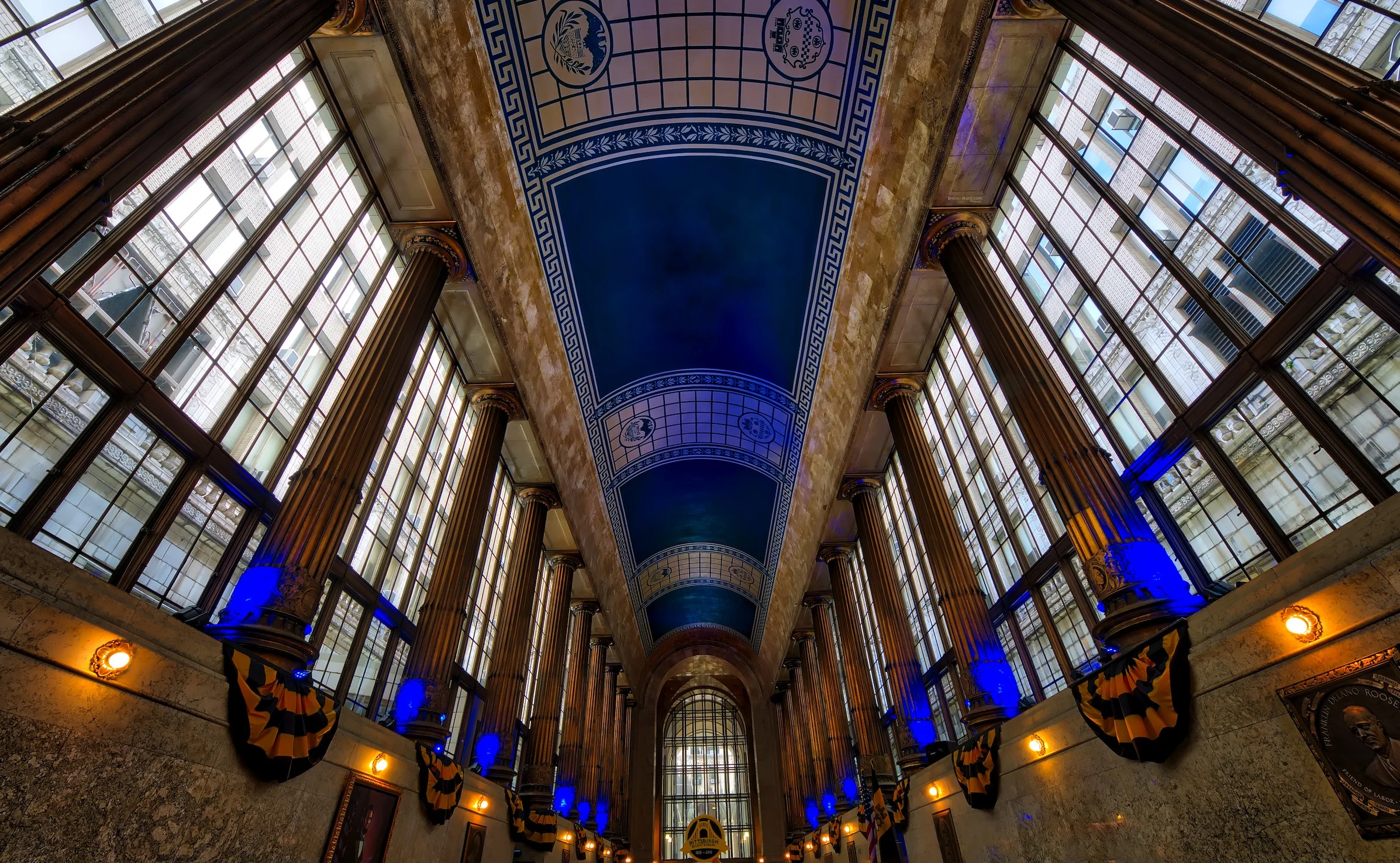 Today’s post is the beautiful ceiling at the Pennsylvanian building in downtown Pittsburgh.  This building was originally a train/bus station.  They use it now as an apartment building and event center.