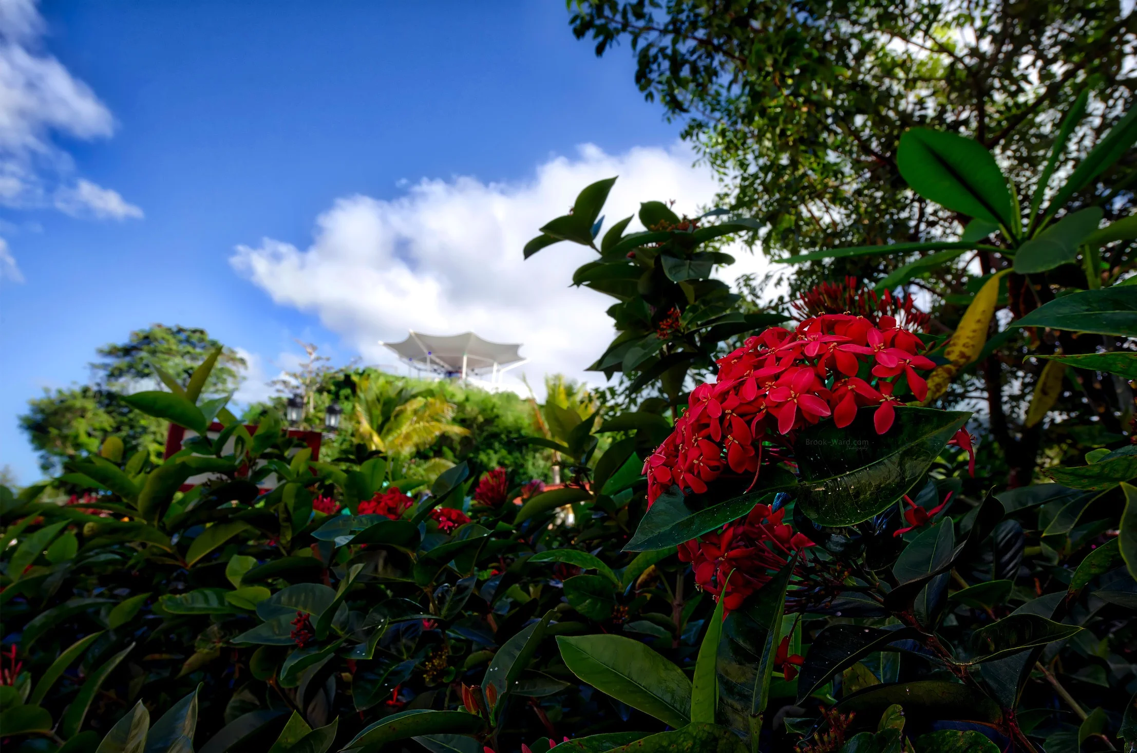 This is a holiday weekend in the United States. So regardless of whether you're in the USA or not, I hope you have a great weekend. Today’s post is of a natural flower that I found in the DR. By the way, the white structure in the background is an observation tower.