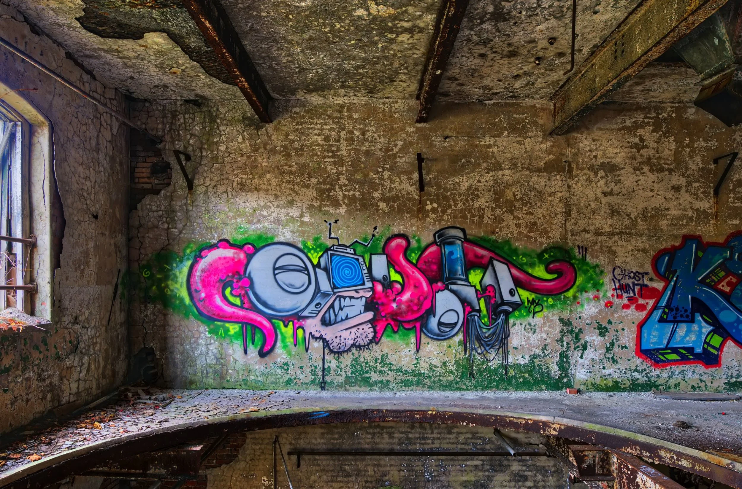 I’ve been to this facility two or three times in the past. It is truly a wonderful explore. This is one of my favorite all time graffiti art works. Maybe not the best done of all time, but I loved the use of the wall and floor.