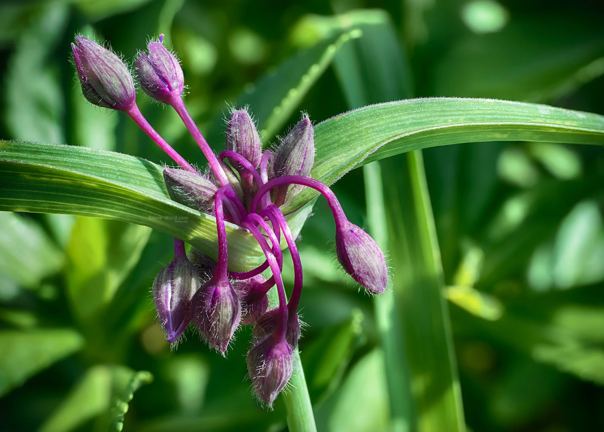 I’ve been playing with my macro lens recently in my yard.  I haven’t used this lens much over the years and I sort of forgot how narrow the depth of field is with it.  Which means that you can’t get the entire flower in focus, unless you use the magic of focus stacking.  So that’s what I did.  This photo is made from 7 photos focused at different spots and then I blended them together for this complete in focus photo of these flower buds.  This Focus Stacking technique creates some amazing detail.  Take a look at all the detail on the buds and the plant